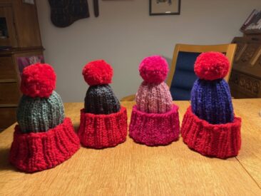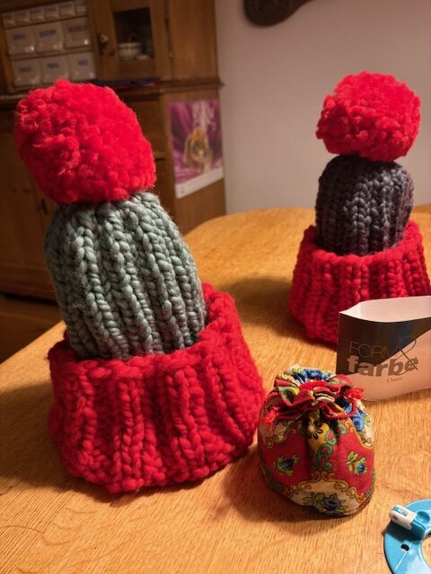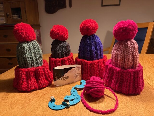 Sie durften sich Farben aussuchen und für jeden/jede habe ich eine individuelle Mütze erstellt.