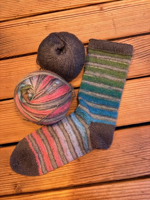Daraus habe ich Toe-to-up ein paar Socken gestrickt, kombiniert mit Balance von Atelier Zitron für Bündchen, Ferse und Spitze.