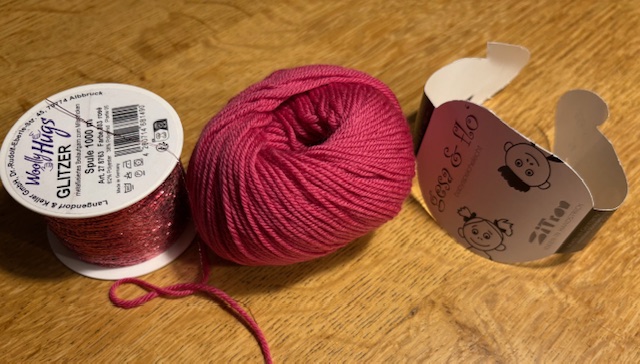 Verstrickt habe ich Gesa und Flo (ca. 15 g) mit dem Glitzergarn von Veronika Hug.